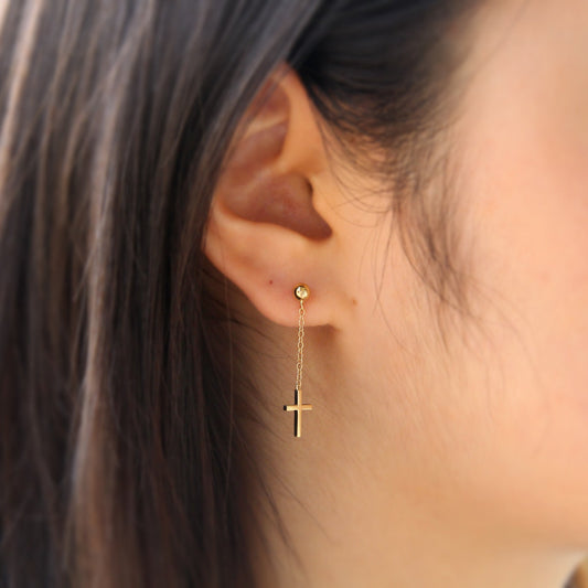 cross dangle earring, ball cross stud, cross earring, 14k dangle cross earring, christian jewelry, baptism gift, dangle cross, cross stud